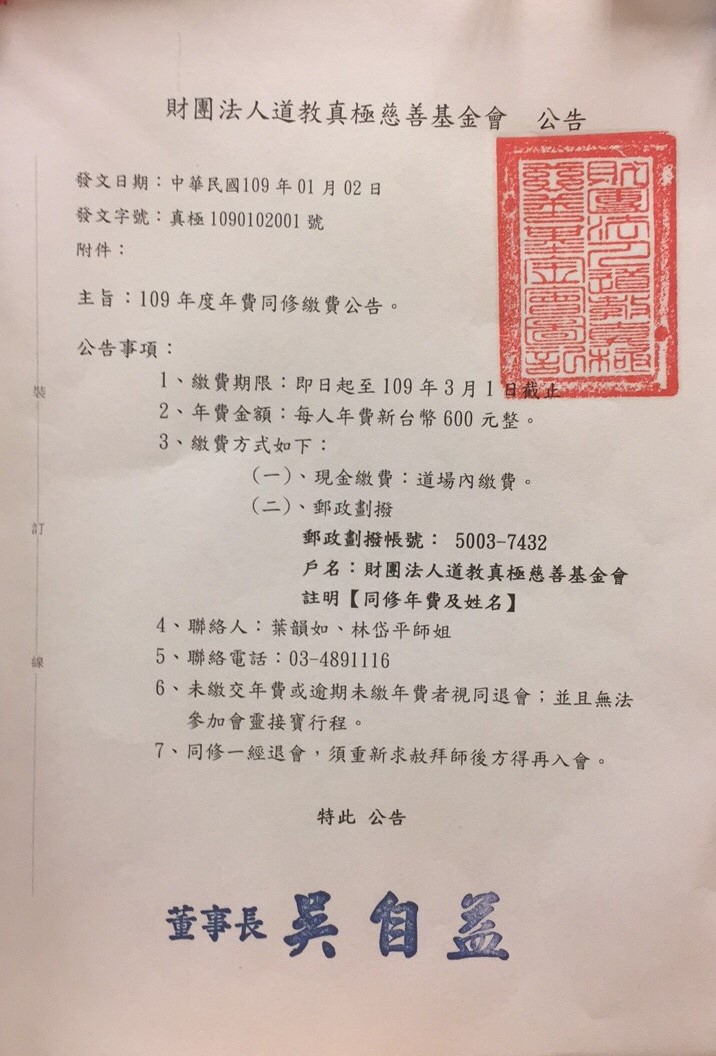 戶名:財團法人道教真極慈善基金會