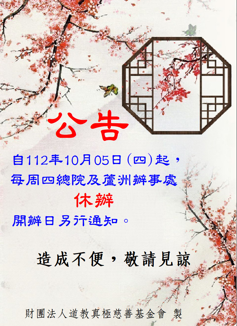 道務休辦公告