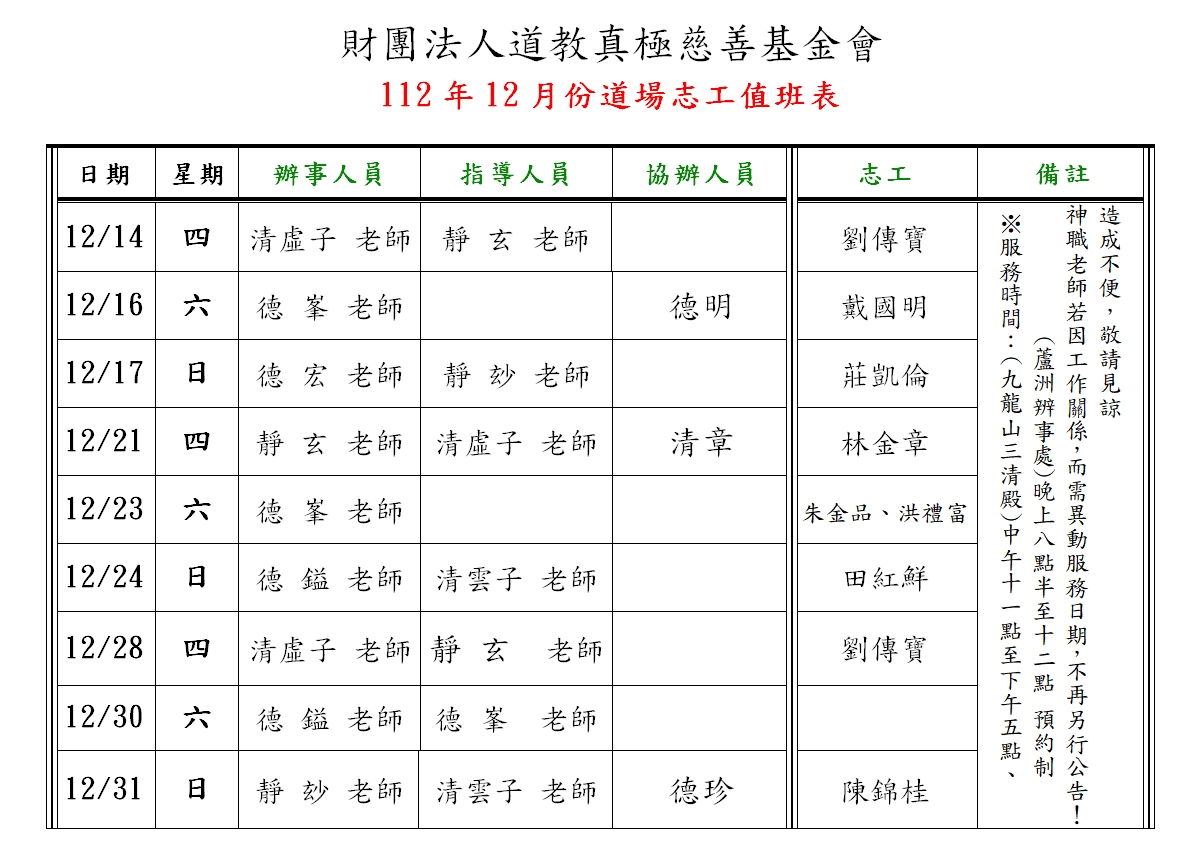 四、需接受助氣及取符令者,應向當日值班志工告知並領取號碼牌等候,恕無法接受問事服務。