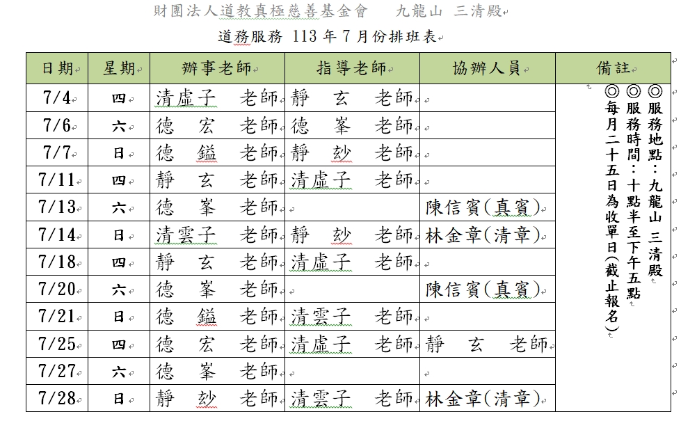二、每次辦事日接受10位預約掛號,請掛號者告知會務人員所需之日期、問事者姓名、問事人數及聯絡電話。當您指定之日期已經額滿,會務人員將安排您下一個最接近的問事日期,經與掛號者確認後,將排入預約掛號登記表並告知您正確的掛號問事日期及掛號順序(號碼)、問事時間。