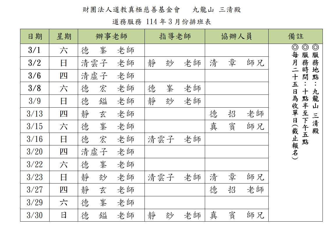 二、每次辦事日接受10位預約掛號,請掛號者告知會務人員所需之日期、問事者姓名、問事人數及聯絡電話。當您指定之日期已經額滿,會務人員將安排您下一個最接近的問 事日期,經與掛號者確認後,將排入預約掛號登記表並告知您正確的掛號問事日期及掛號順序(號碼)、問事時間。